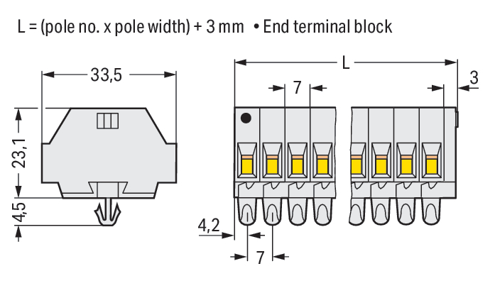 - Aansluitbare geleiderdoorsnede eendraads: 0,08 - 4 mm²