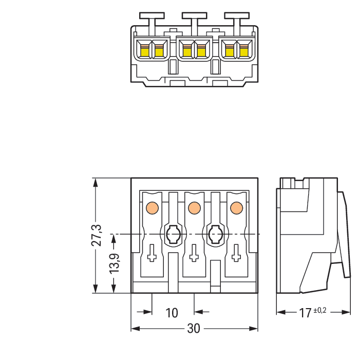 - Aansluitbare geleiderdoorsnede eendraads: 0,5 - 2,5 mm²