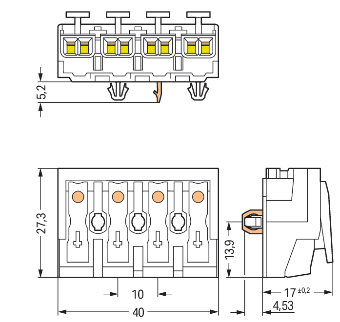 Kroonklem Drukknop extern direct PE-contact 294-5114 VVE=500 Wago