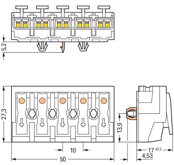 Kroonklem Drukknop extern direct PE-contact 294-5155 VVE=250 Wago