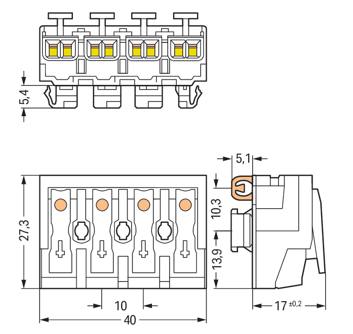 - Aansluitbare geleiderdoorsnede eendraads: 0,5 - 2,5 mm²