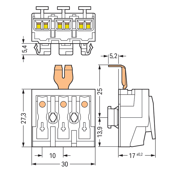 - Aansluitbare geleiderdoorsnede eendraads: 0,5 - 2,5 mm²