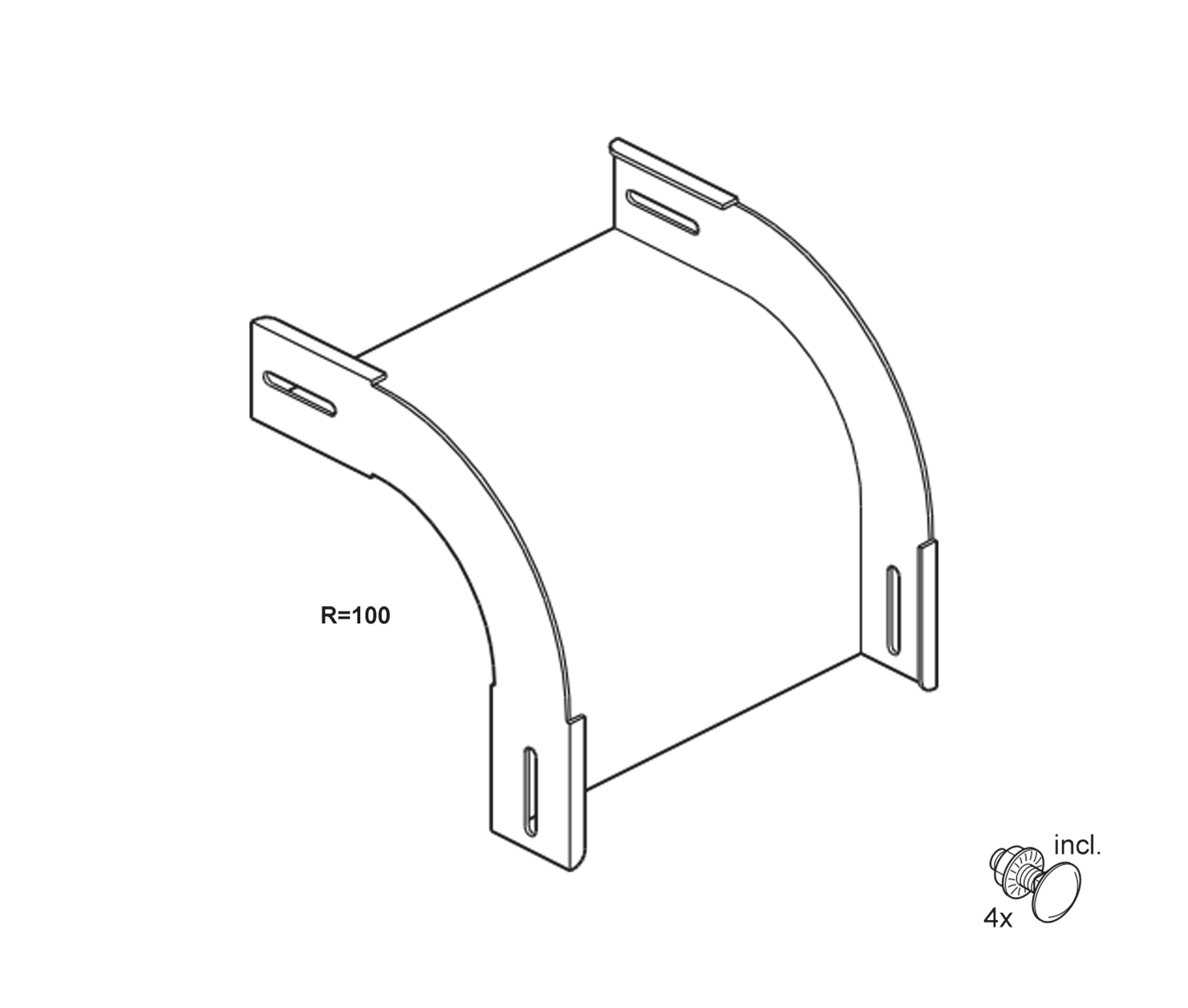 Vervalstuk 90gr. Lock OK3 H60 B140 RVS 304 R100 Niedax Group