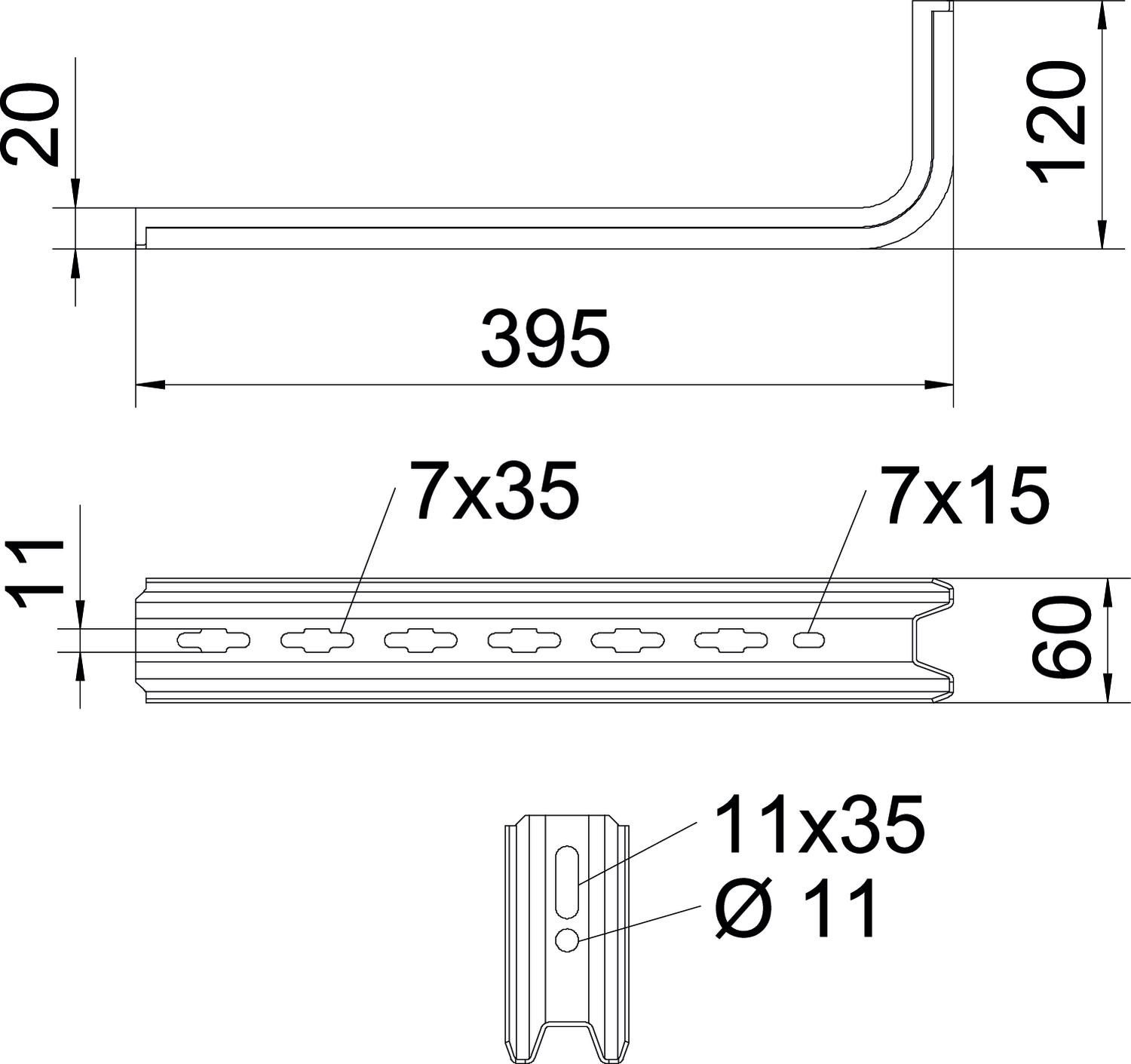 TP-profiel/wand-profielconsole toepass.als profiel B395mm OBO