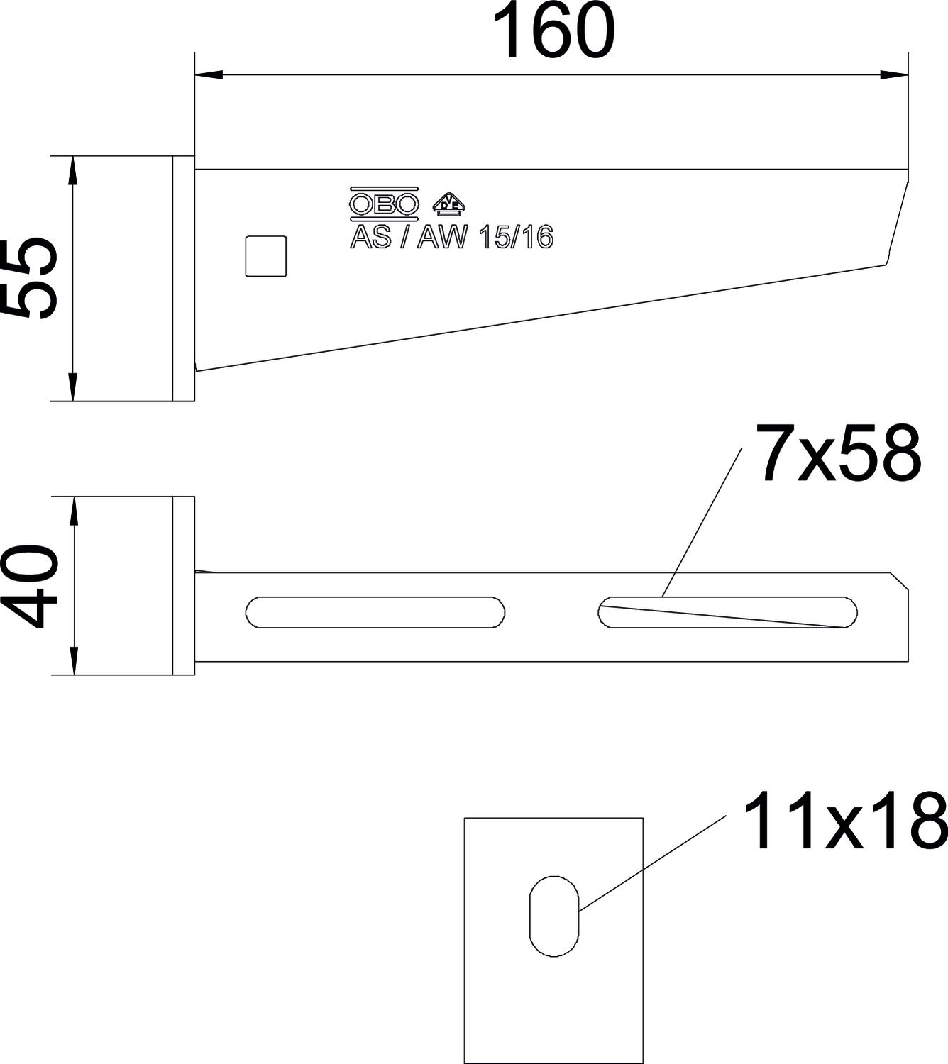 Wand- en profielconsole vastgelaste kopplaat B160mm 6420664 OBO