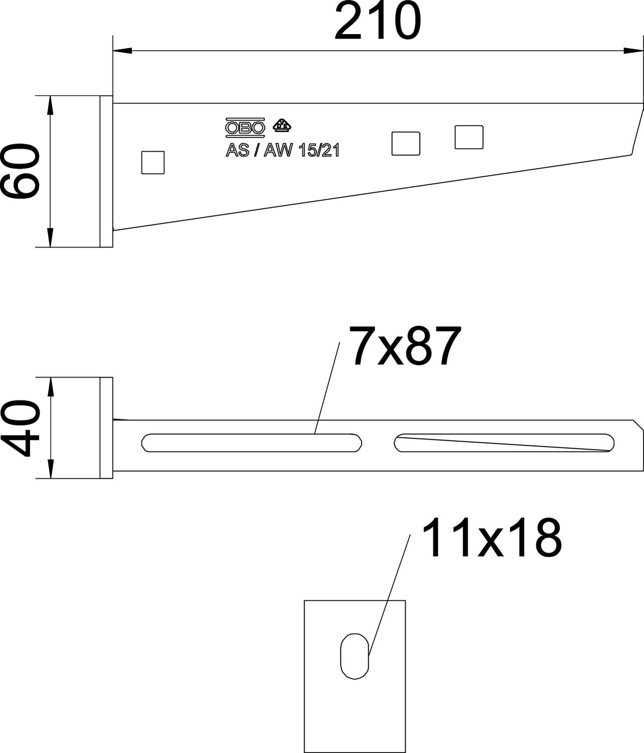 Wand- en profielconsole vastgelaste kopplaat B210mm 6420680 OBO