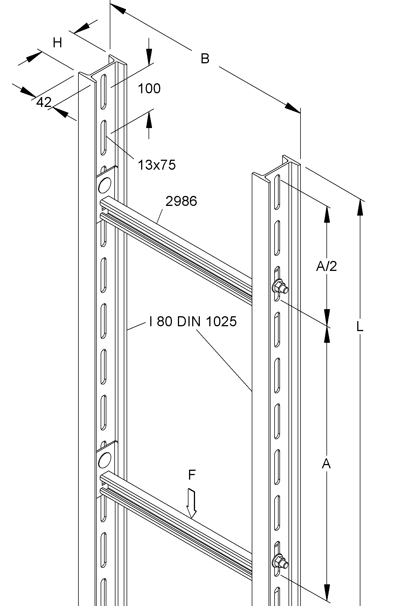 Lengte a 6m. Stijgladder STIC 86/606 Niedax Group