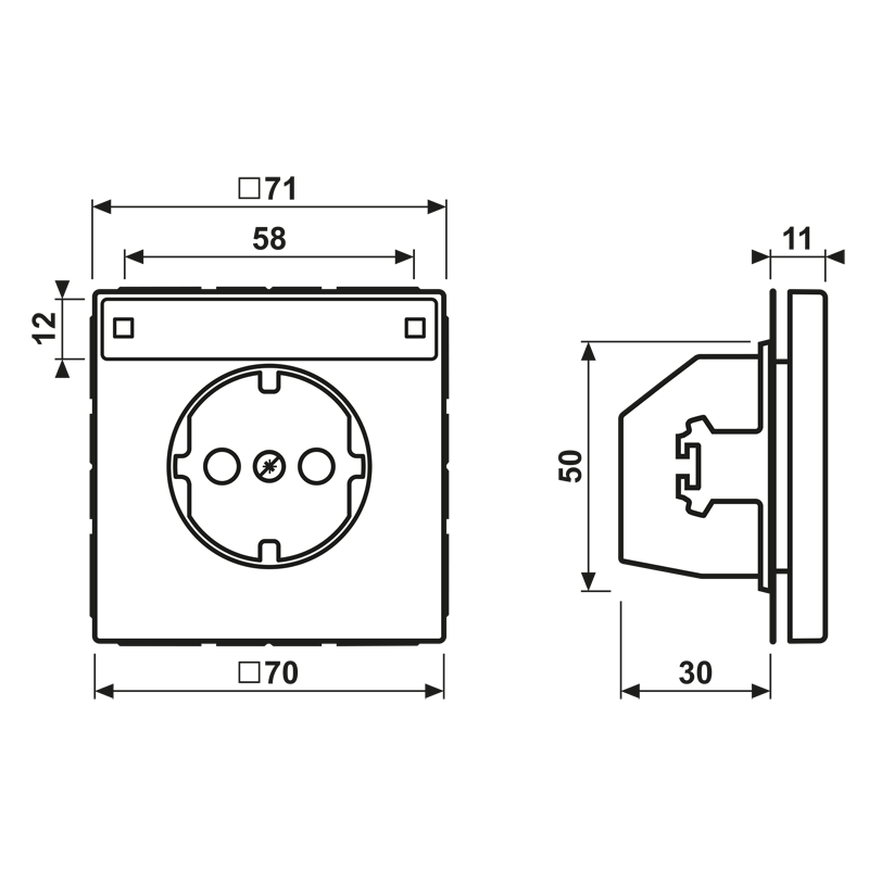 - Schakelmateriaaldiepte: 30 mm
