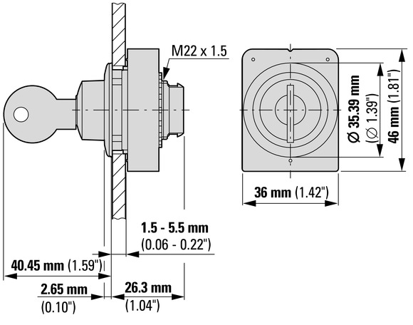 Sleutelschakelaar 30mm RVS vlak 3 standen terugverend Eaton
