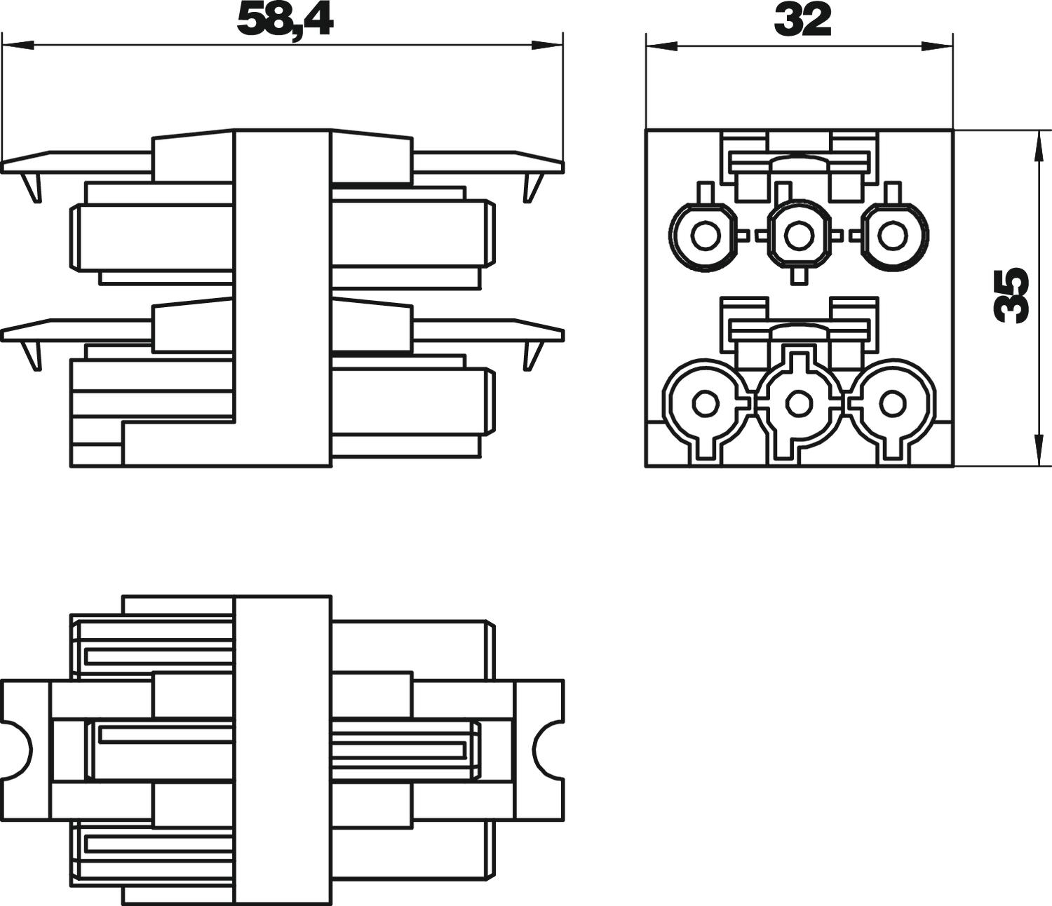 Verdeelblok 3-polig 1 ingang/3 uitgangen 3-polig zwartz OBO