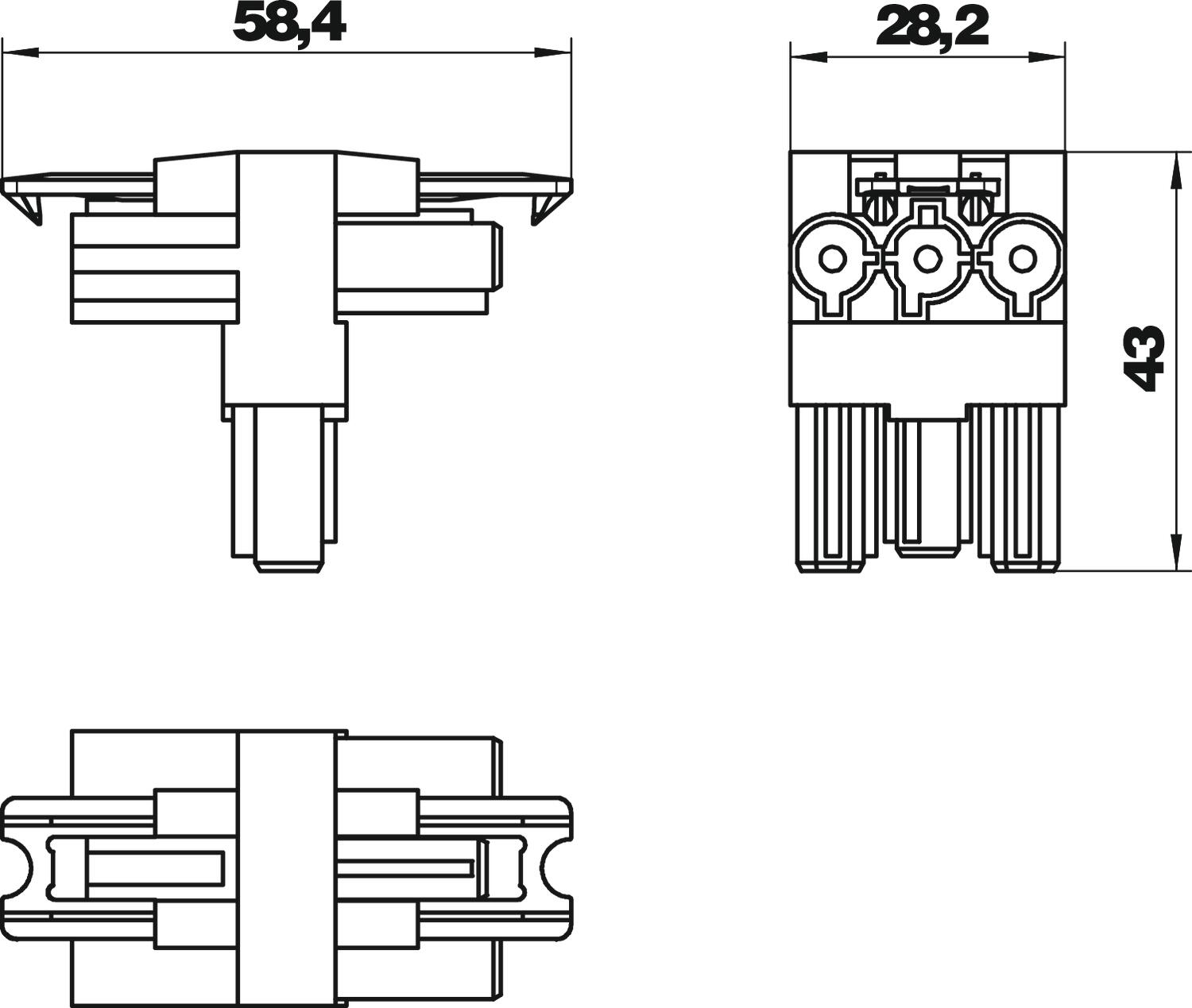 Verdeelblok T-vorm 1 ingang/2 uitgangen 3-polig zwartz OBO