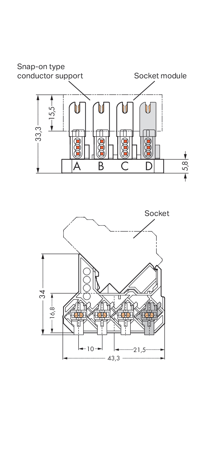 Opklikbaar busdeel 2-polig grijs/wit 267-232 VVE=500 Wago
