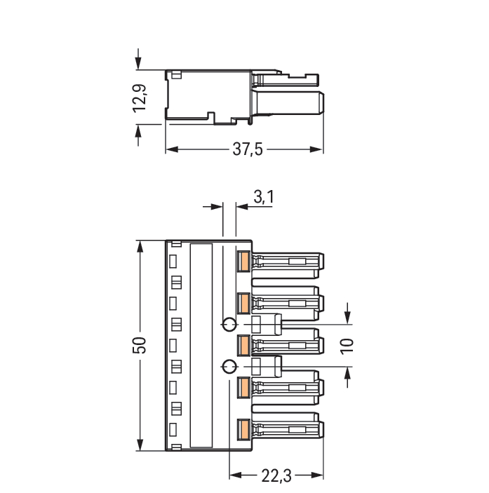 Female 5-polig Cod. A 770-405 VVE=50 Wago