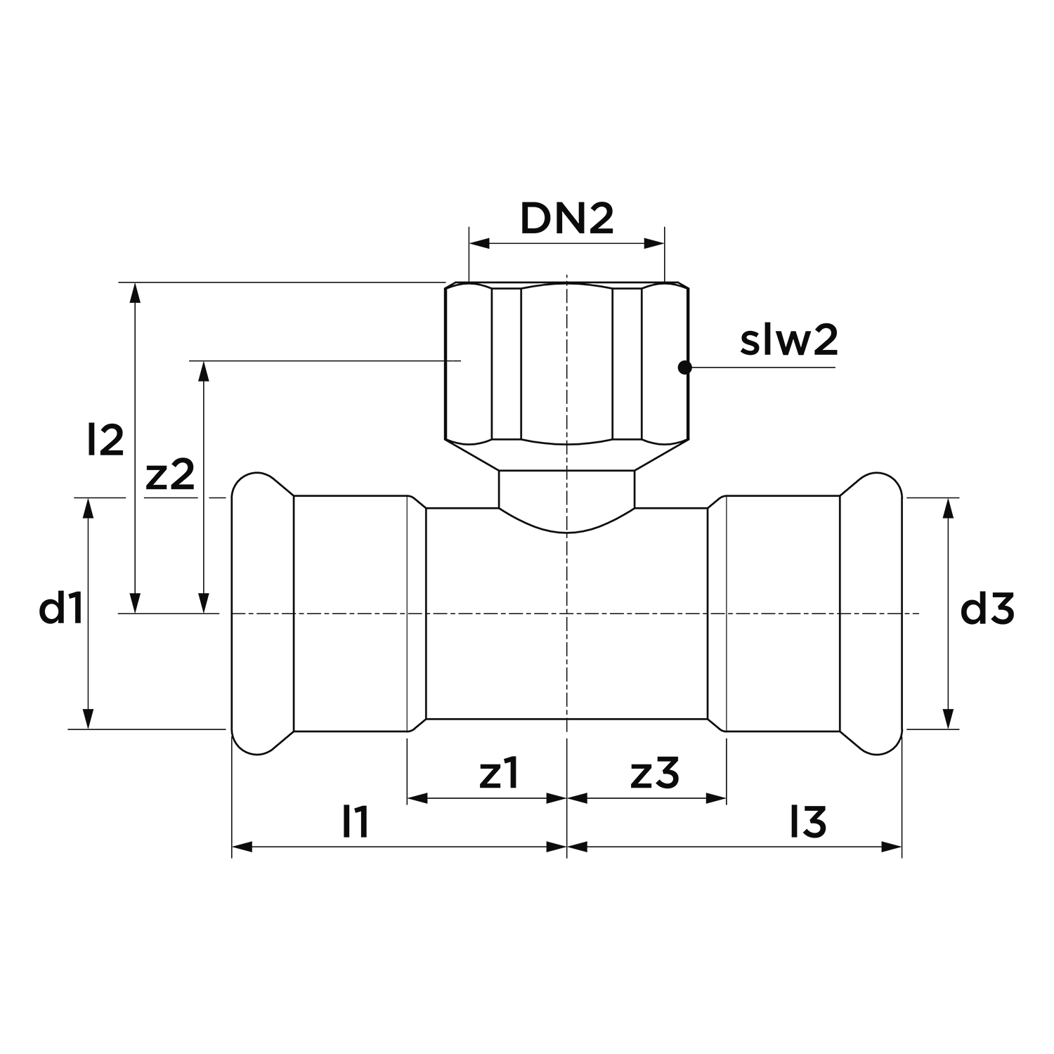 T-koppeling verlopend XPress STAAL C1418 66,7x3/4"bn.lx66,7mm VSH