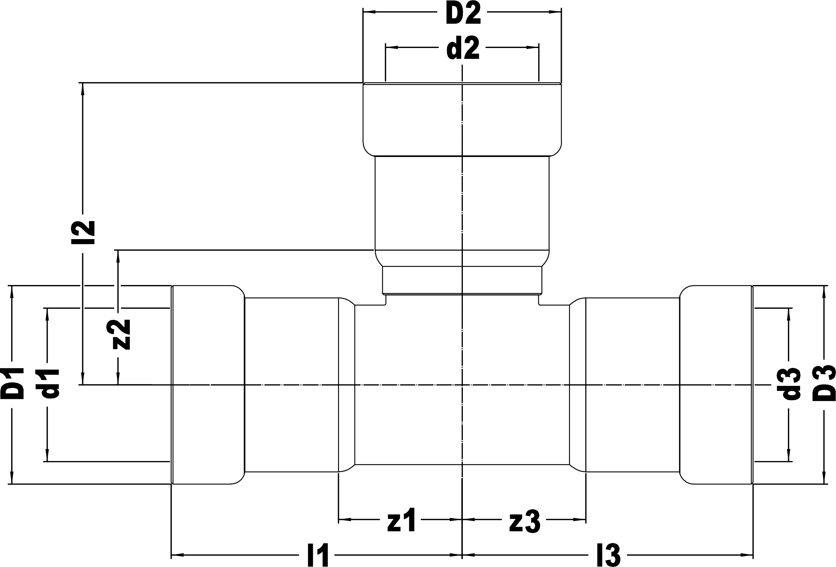 T-koppeling verlopend POWERPRESS dikwandig C9415 1.1/2"x1"x1.1/2" VSH
