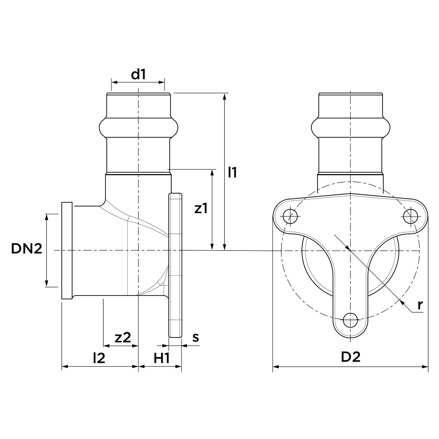 • Uitwendige buisdiameter aansluiting 2: 21,3 mm