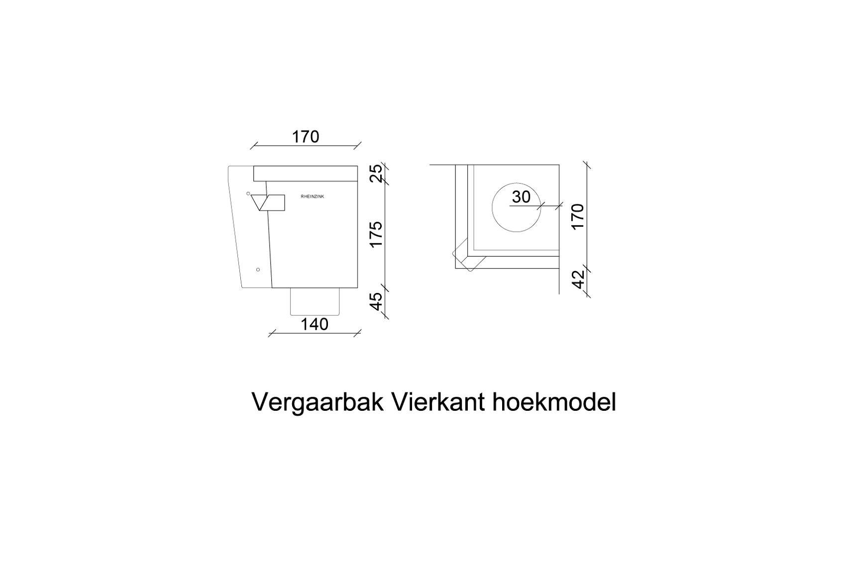 Vergaarbak zink vierkant HOEKmodel (junior) 80mm Rheinzink