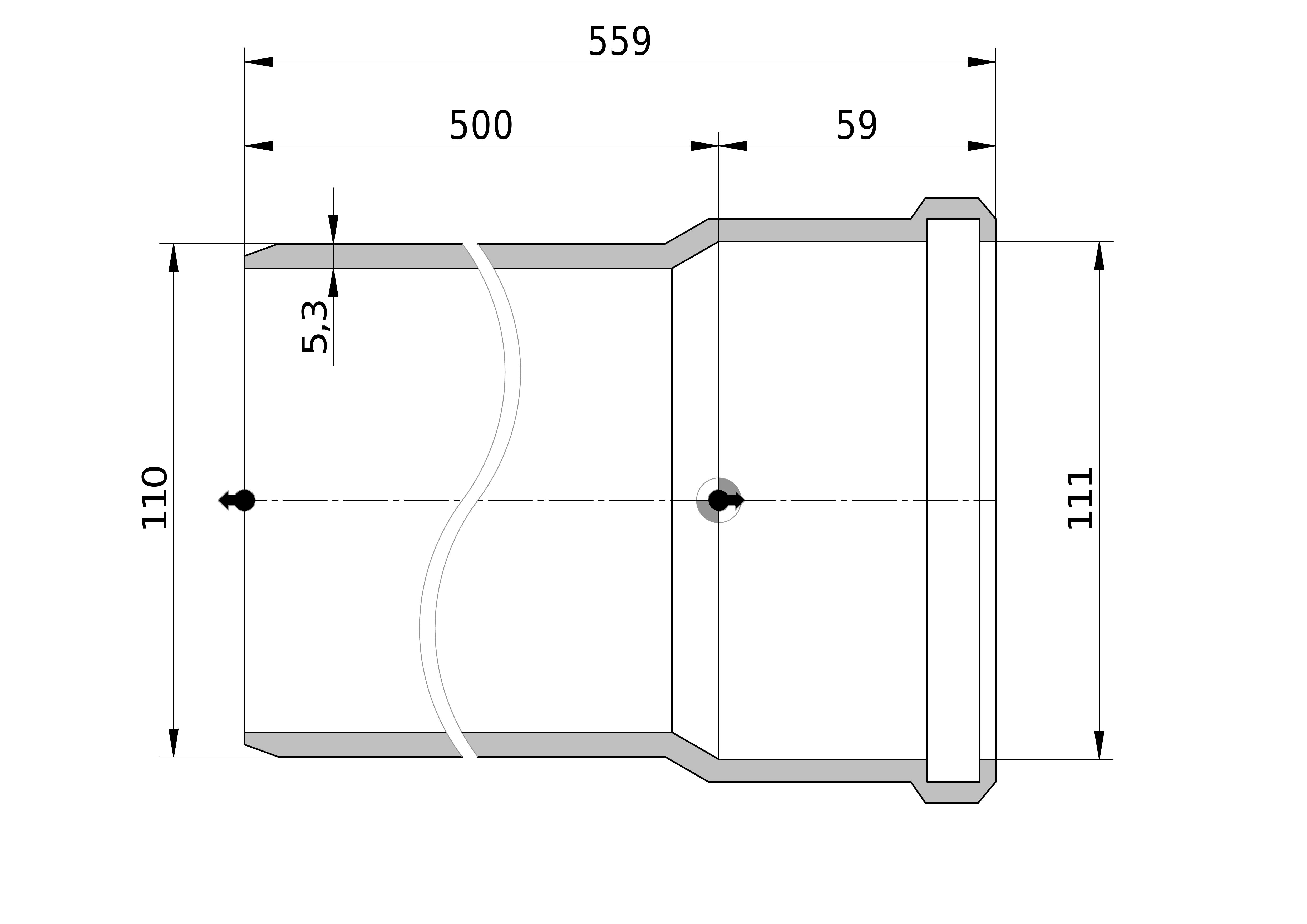 Lengte a 50cm PP AS+ riool afvoerbuis 110mm lichtgrijs geluidsarm 1x mof Wavin