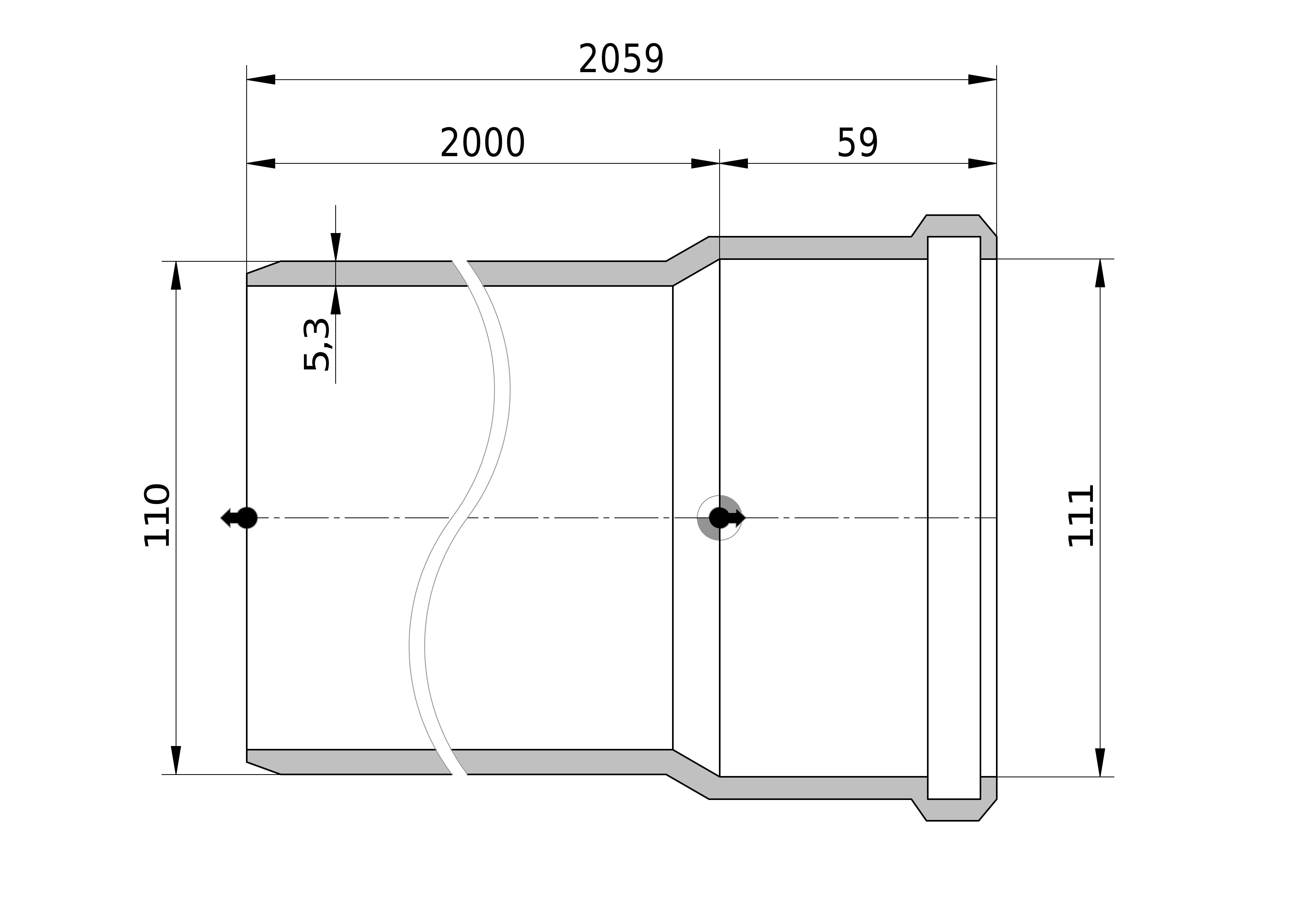 - Uitwendige diameter mantelbuis: 129,8 mm