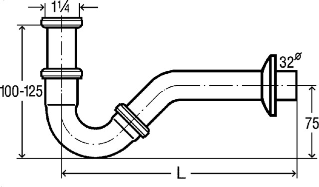 Bidetbuissifon 1.1/4" chroom incl. muurbuis+rozet Viega