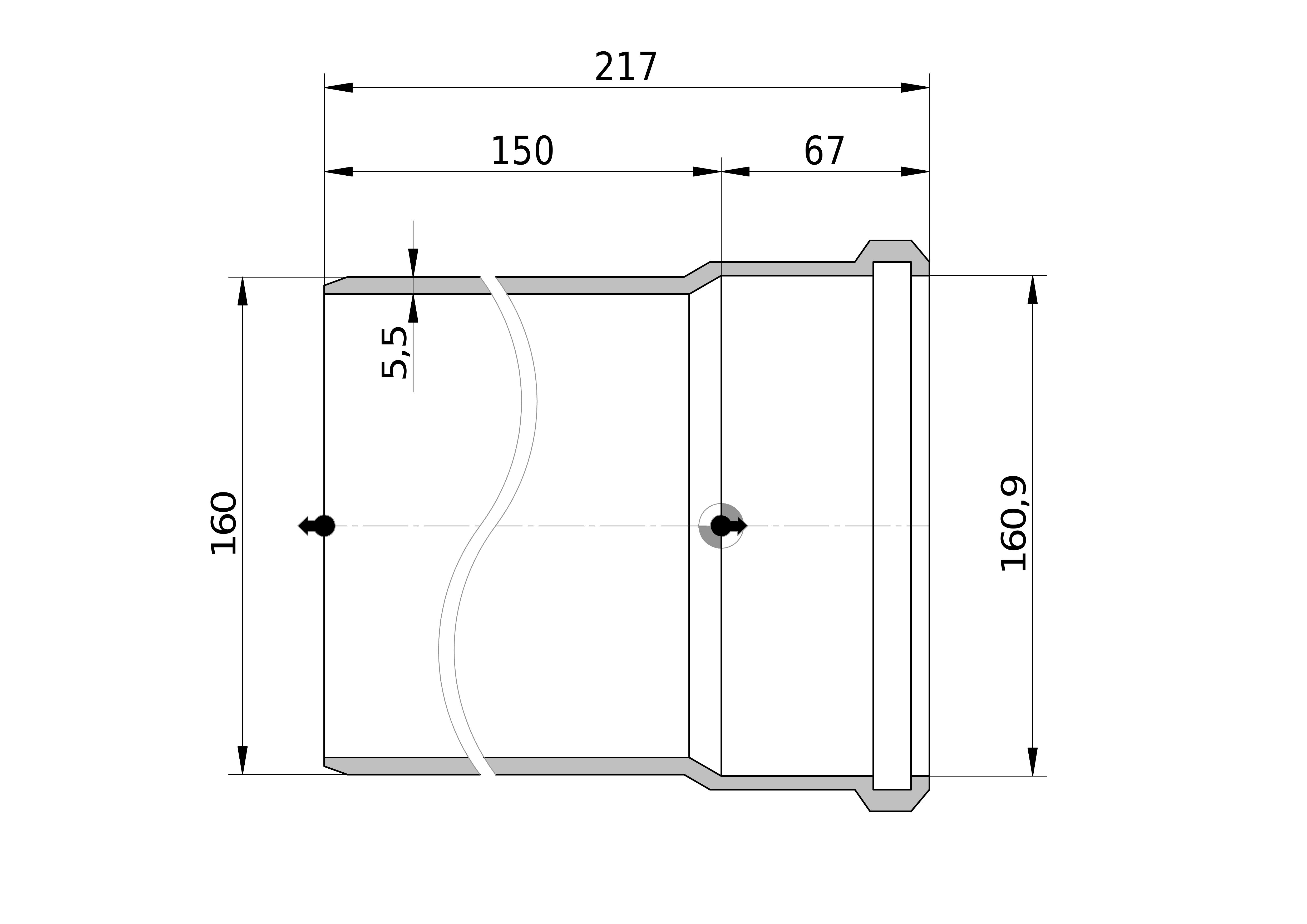 • Uitwendige buisdiameter: 160 mm