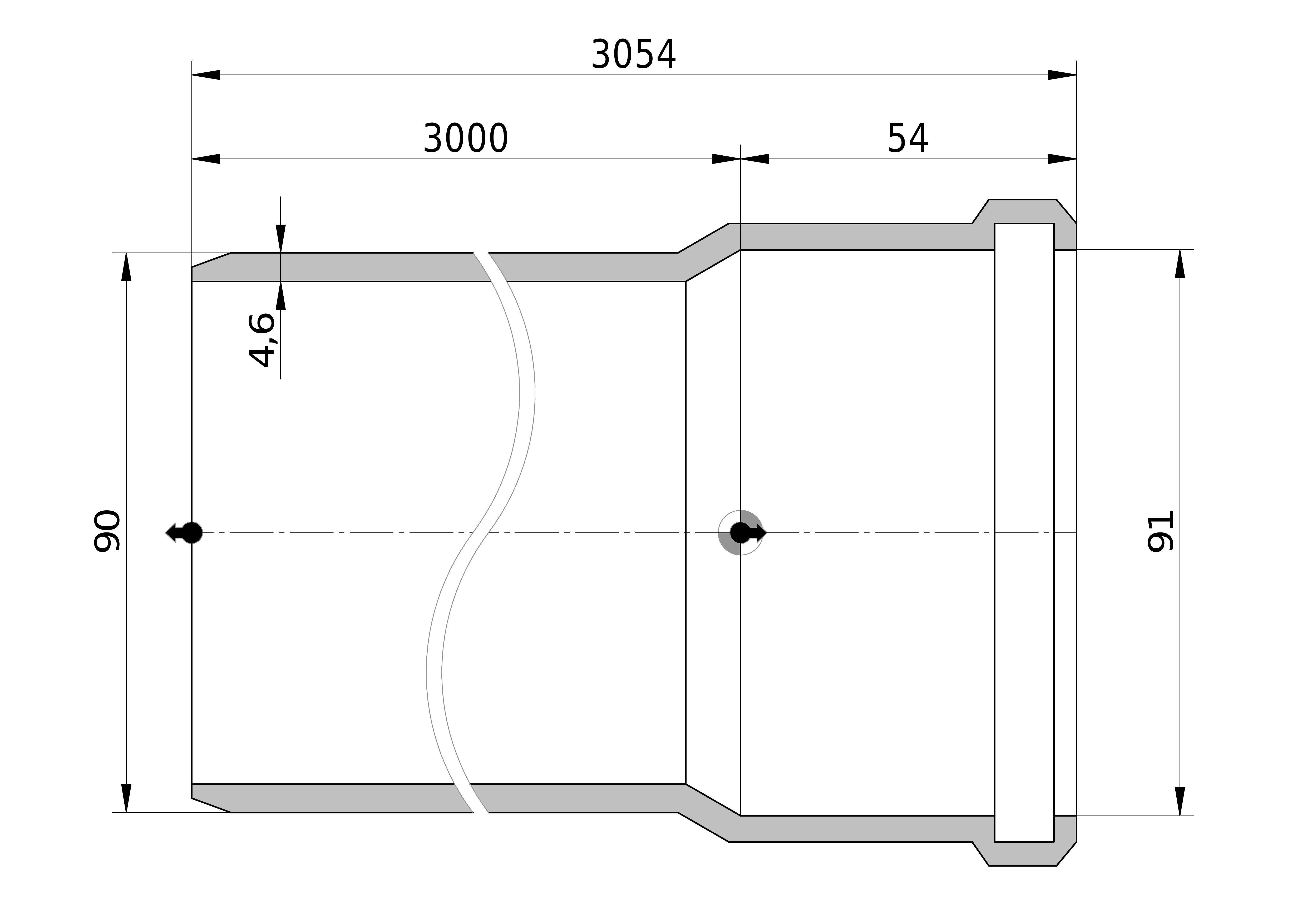- Uitwendige buisdiameter: 90 mm