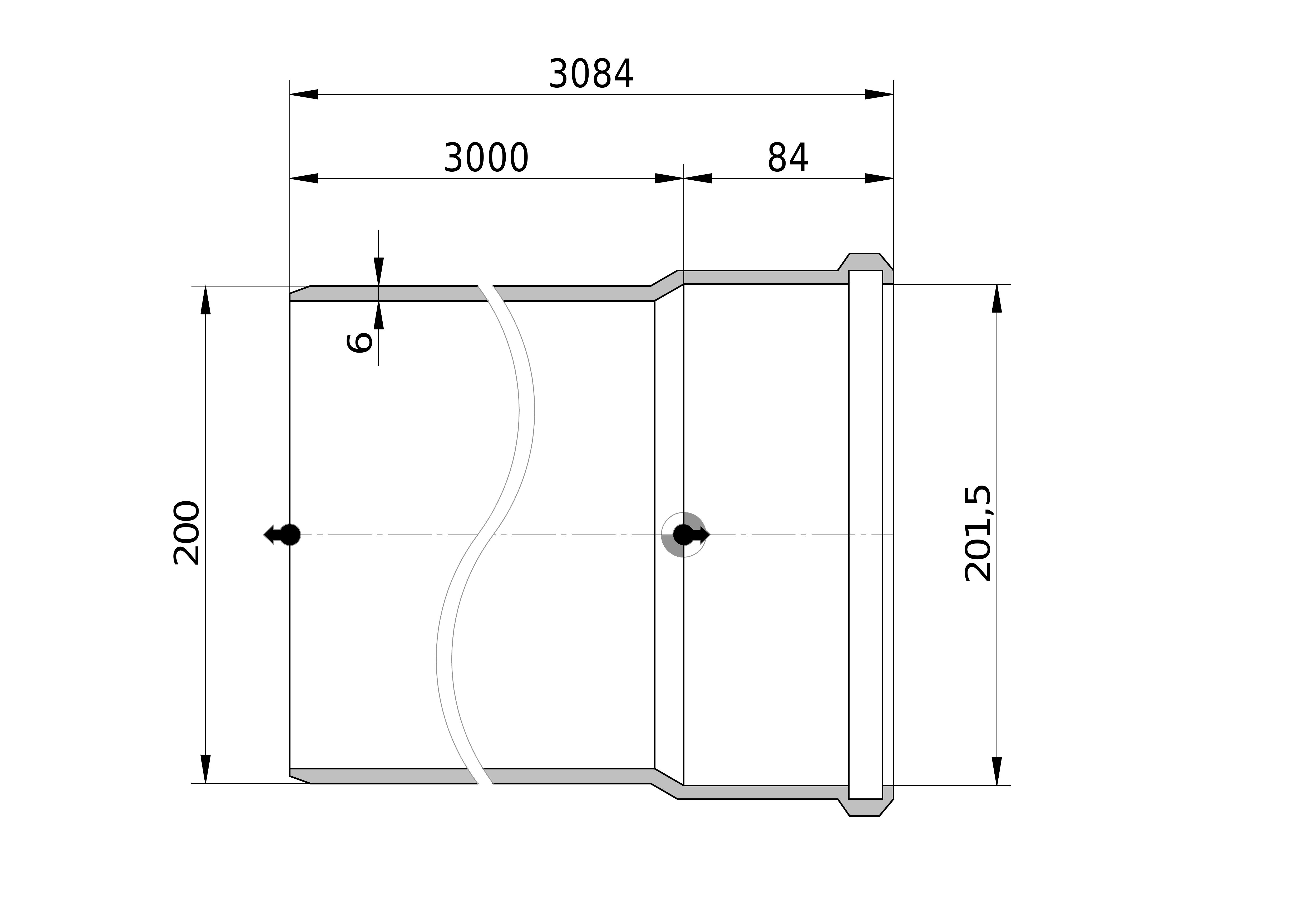 - Uitwendige buisdiameter: 200 mm