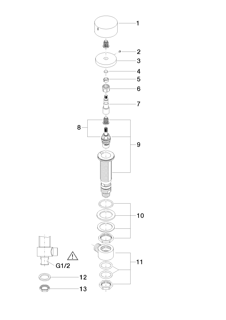 • Uitvoering inbouwstopkraan: Inbouwdeel + afbouwdeel