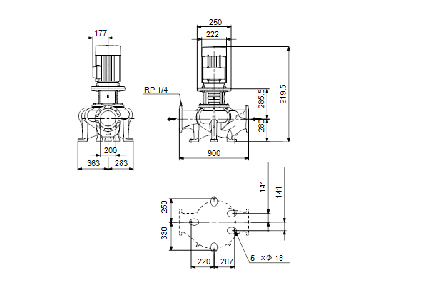 Inlinepomp TP 200-50/4-A-F-A-BQQE 400D 50HZ GRUNDFOS