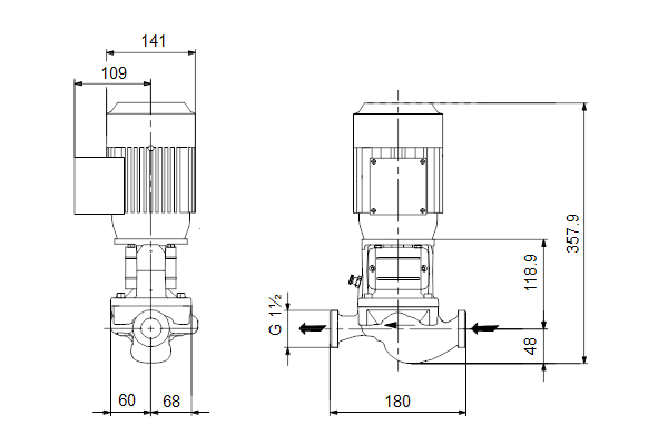 Inlinepomp TP 25-90/2-A-O-A-BQQE 400Y 50HZ GRUNDFOS