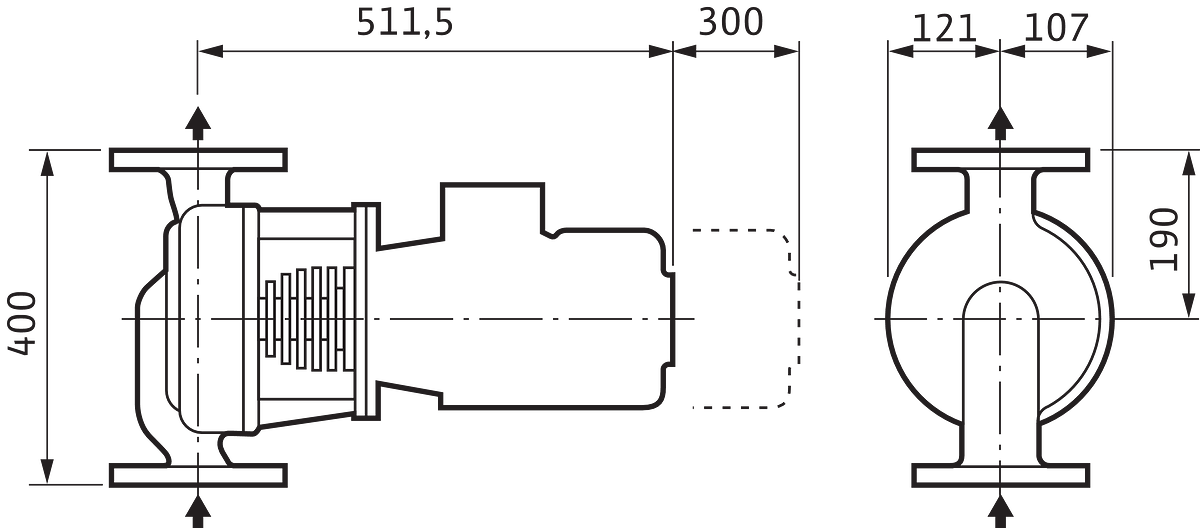 Inlinepomp droog Veroline IPH-W 65/160-1,1/4 Wilo
