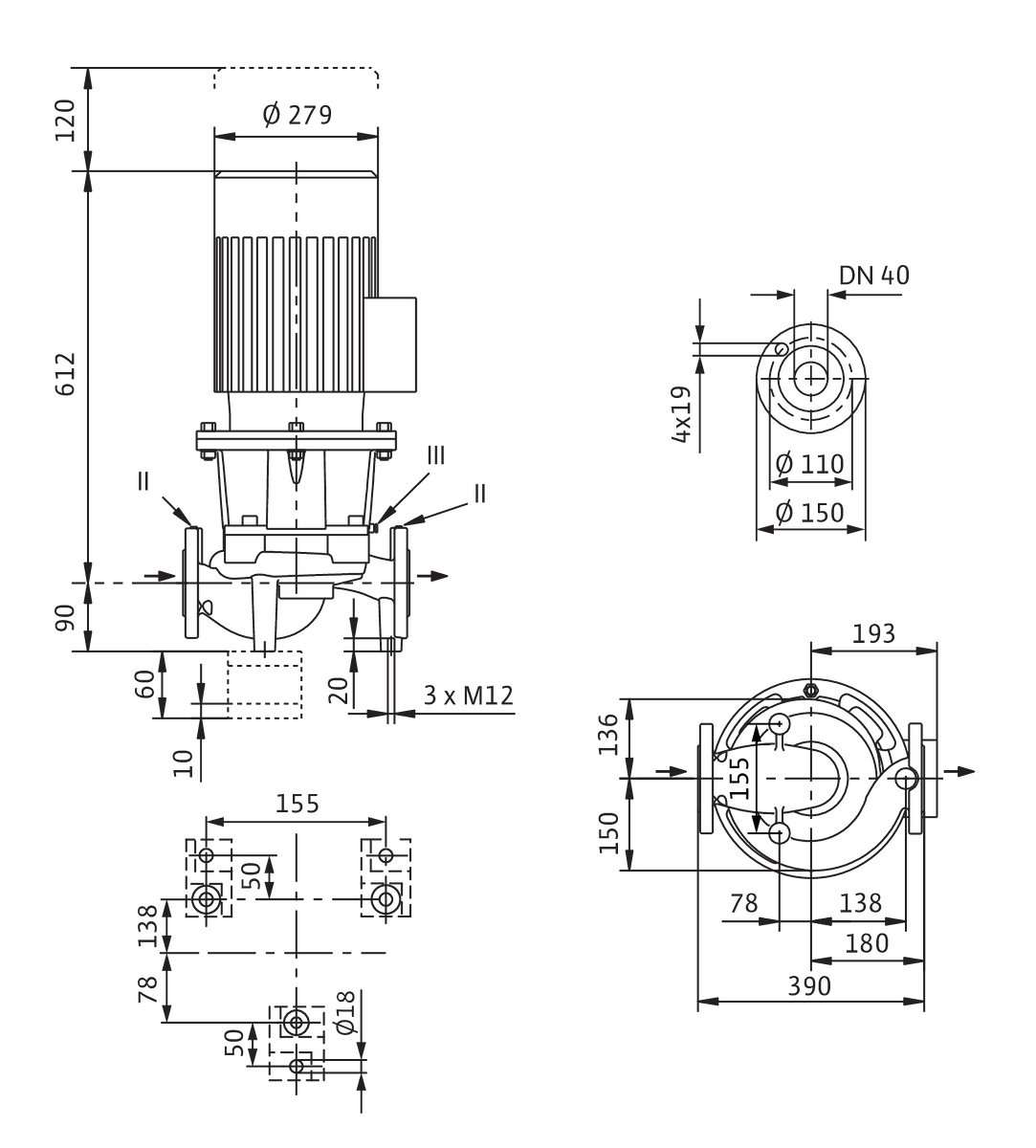 - Nom. diameter aansluiting uitlaatzijde: DN 40