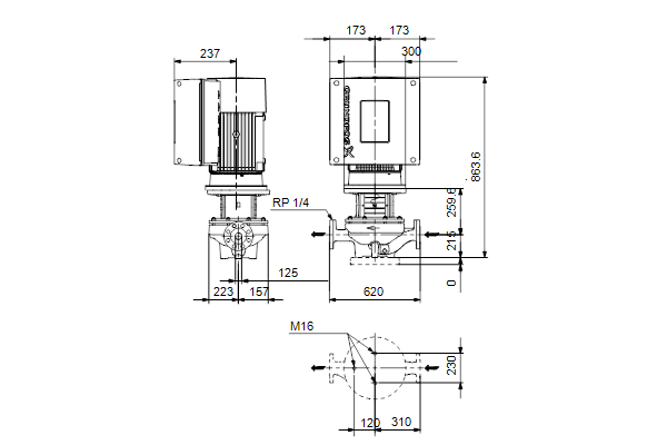 Inlinepomp TPE2 125-160 A-F-A-BQQE-LWA GRUNDFOS