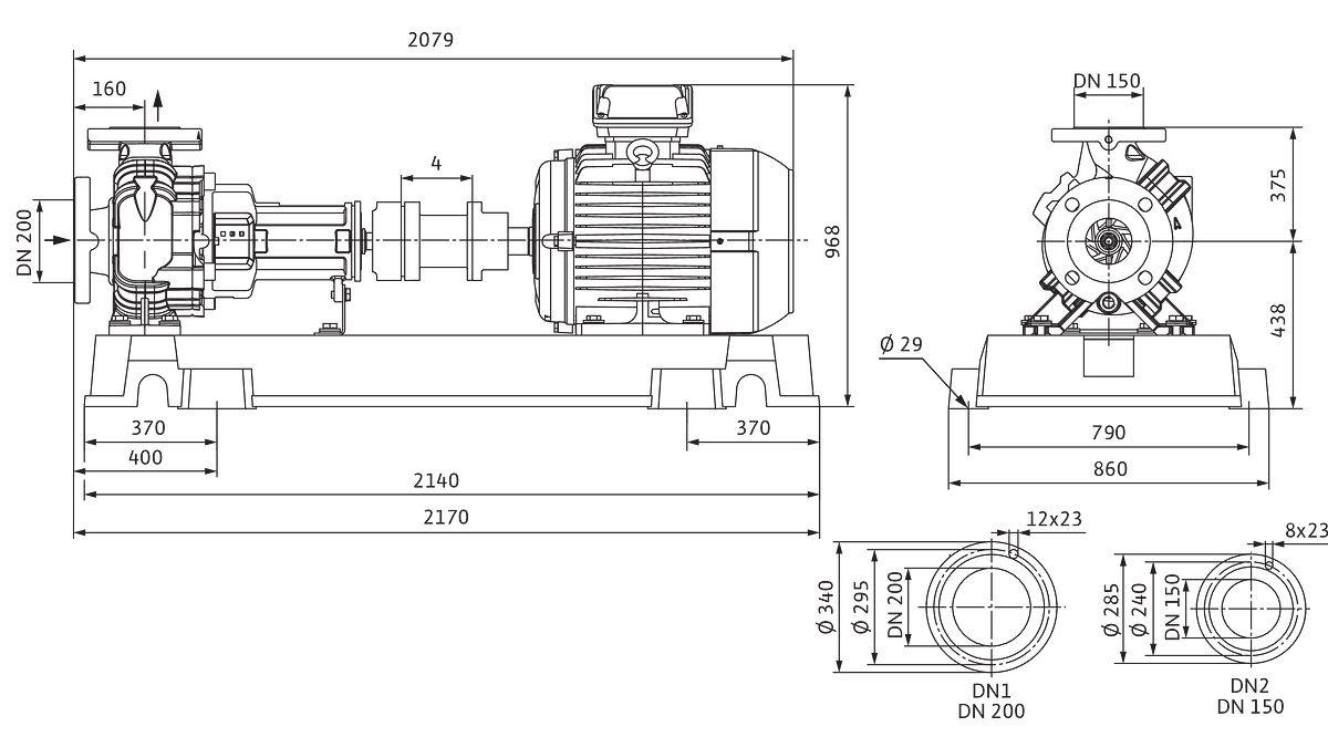 Ééntraps lagedrukcentrifugaalpomp axiale aanzuiging op grondplaat ATMOS GIGA-N 150/250-200/2-p5 Wilo