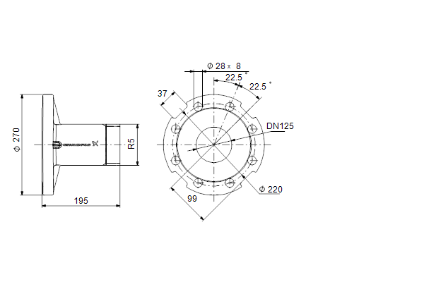 Verloopstuk R5" x DN125 PN40 1.4308 GRUNDFOS