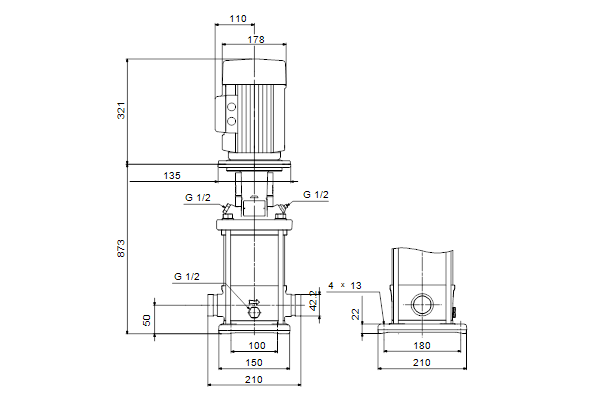 - Materiaal pomphuis: Roestvaststaal (RVS)