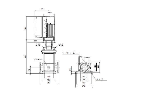 • Druktrap flens aansluiting uitlaatzijde: PN 25