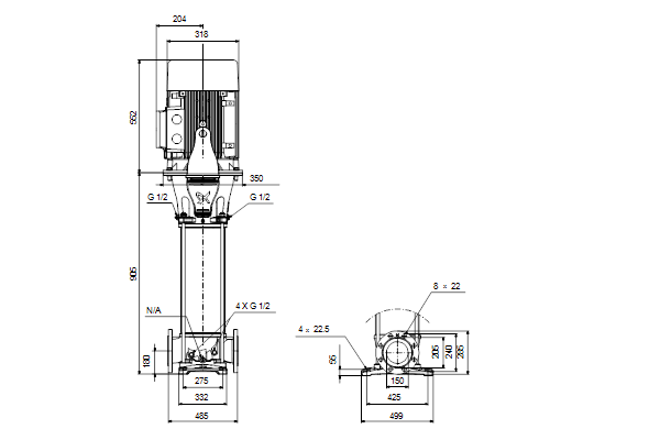 Centrifugaalpomp CRN125-2 A-F-A-E-HQQE 400D/690Y 50 Hz GRUNDFOS