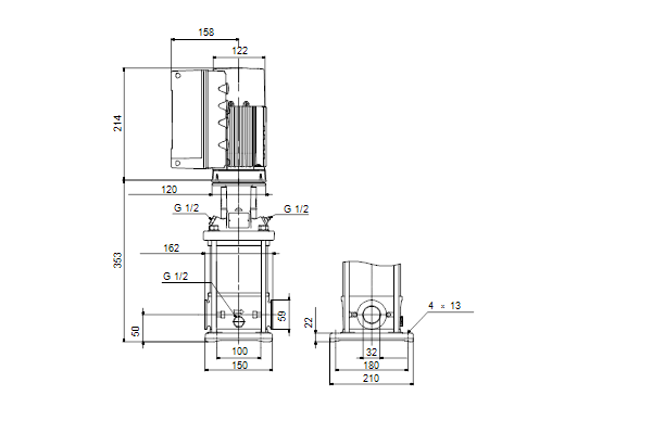 • Druktrap flens aansluiting uitlaatzijde: PN 25