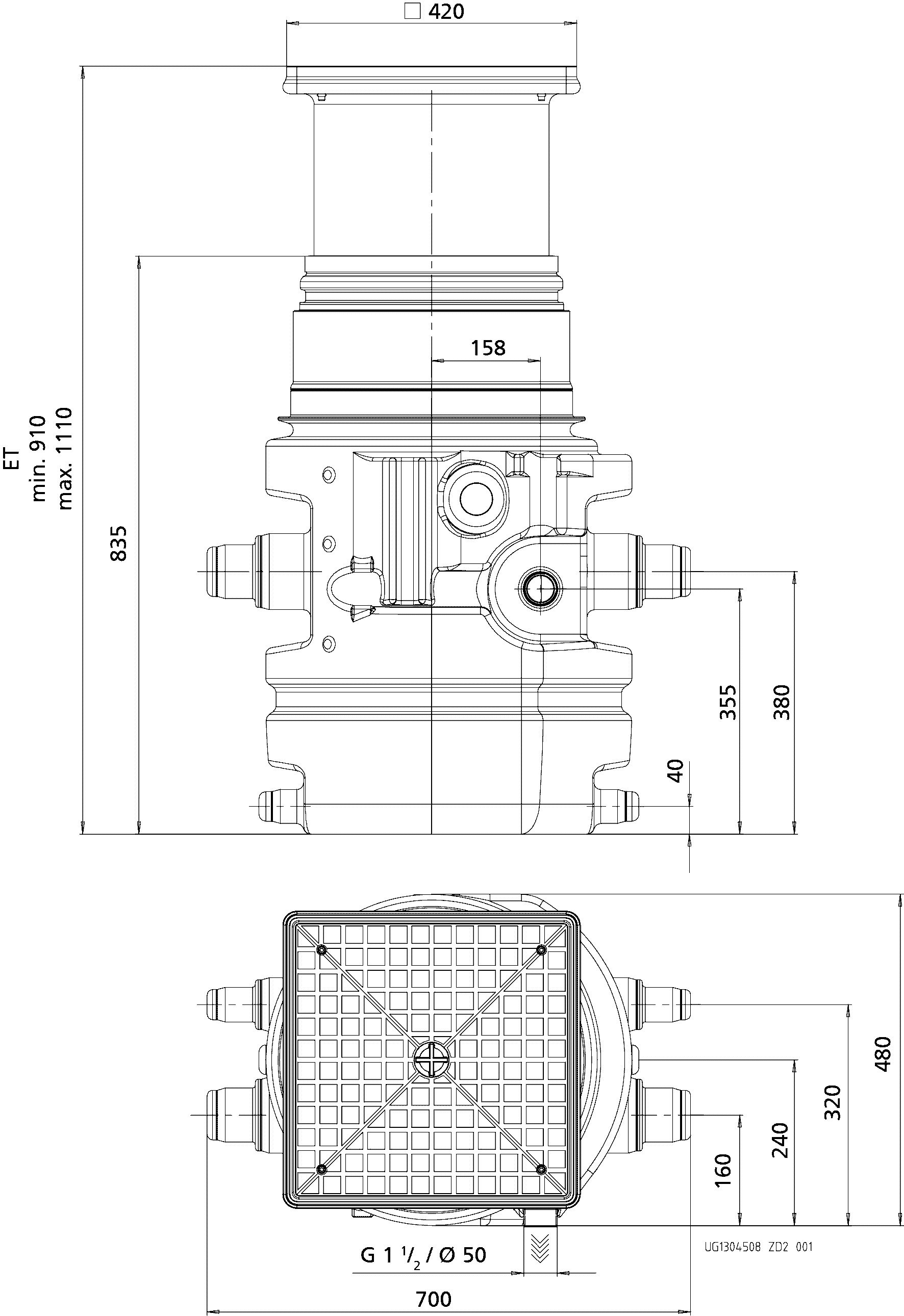 • Uitwendige buisdiameter aansluiting inlaatzijde: 110 mm