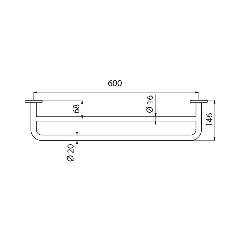 Handdoekdrager 2 stangen diam.20 L.600 RVS glanzend gepol. Delabie
