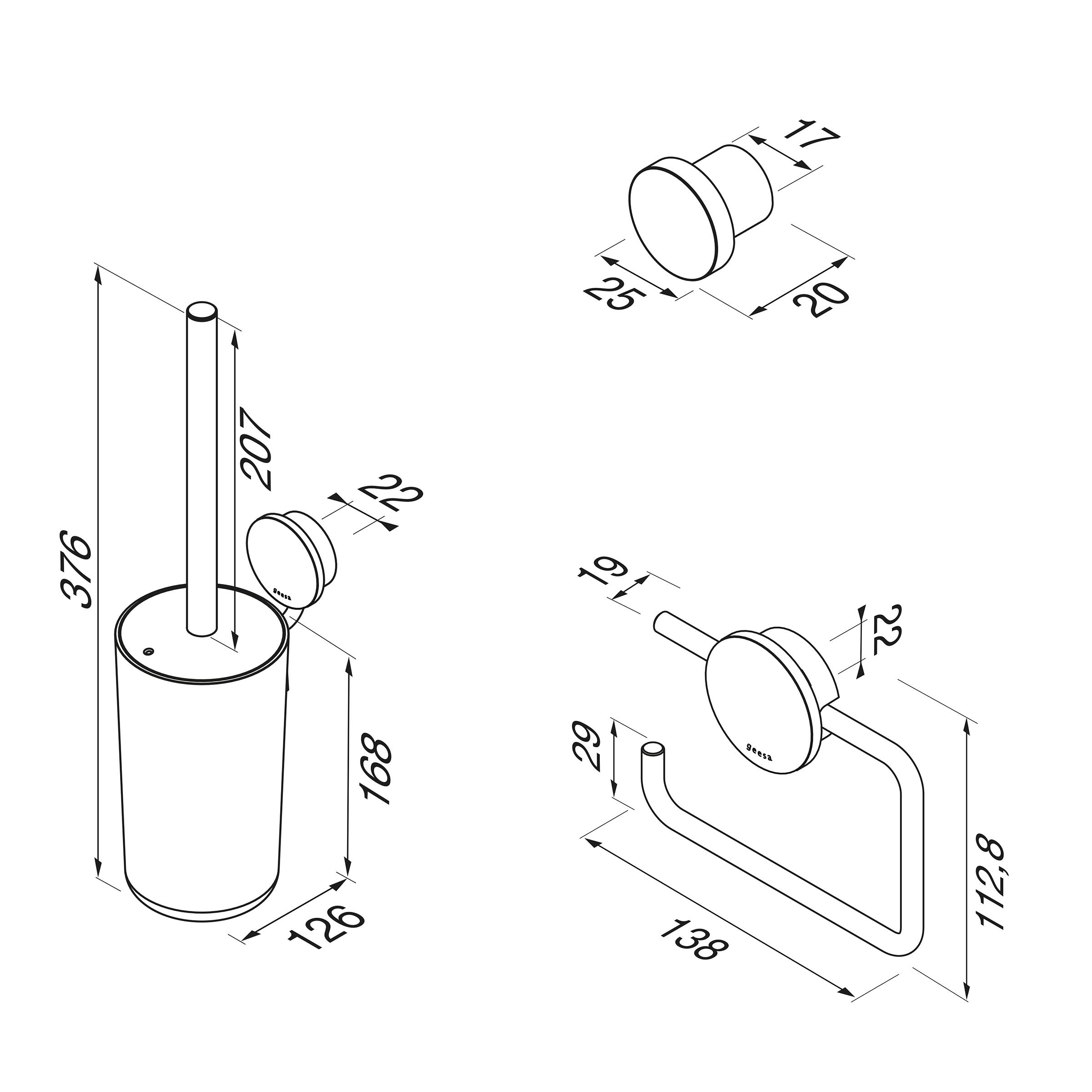 Closetaccessoireset Opal RVS geborsteld (rolhouder/borstelgarnituur/haak) Geesa