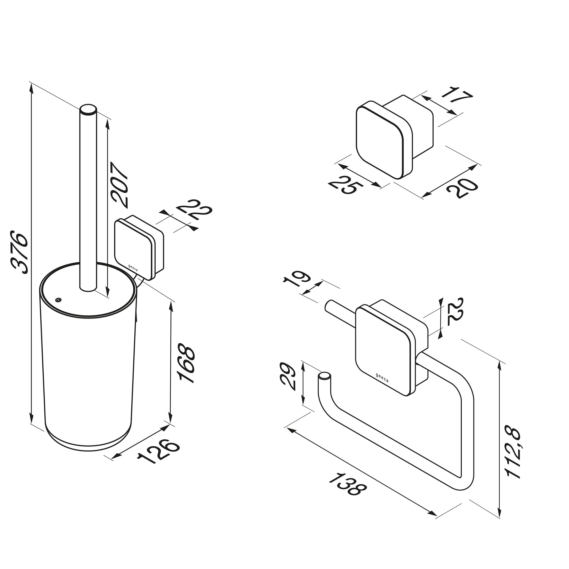 Closetaccessoireset Topaz chroom (rolhouder/borstelgarnituur/haak) Geesa