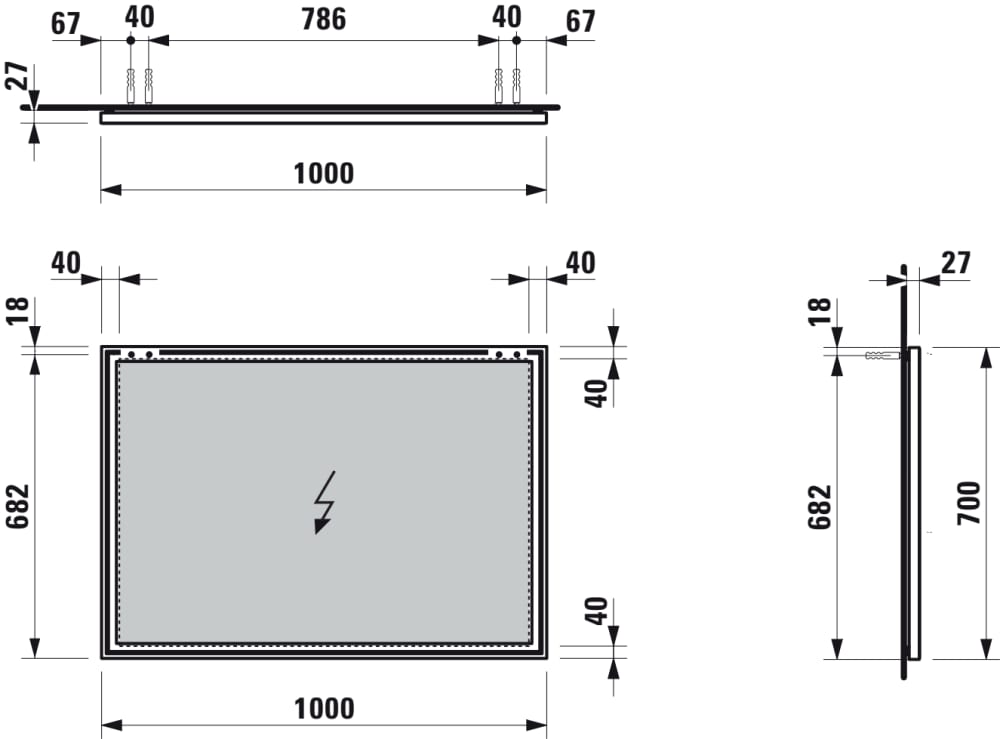 Spiegel 1000x700 met aluminium frame H4474069001441 Laufen