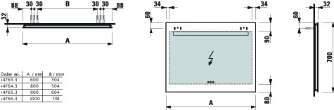 Spiegel 700x600mm 3 touch sensors on-off/dimmer/ kleurtemp. Laufen