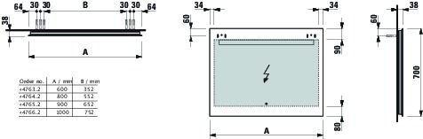 Spiegel 700x800mm met 1 touch sensor (on/ off/ dimmer) Laufen