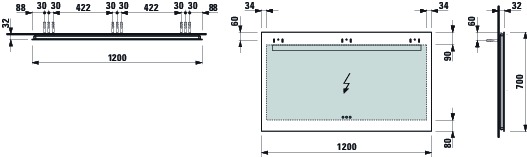 Spiegel 700x1200mm 3 touch sensors on-off/dimmer/ kleurtemp. Laufen