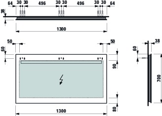 Spiegel 700x1300mm met muurschakelaar H4476819501441 Laufen