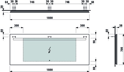 Spiegel 700x1800mm met 1 touch sensor (on/ off/ dimmer) Laufen