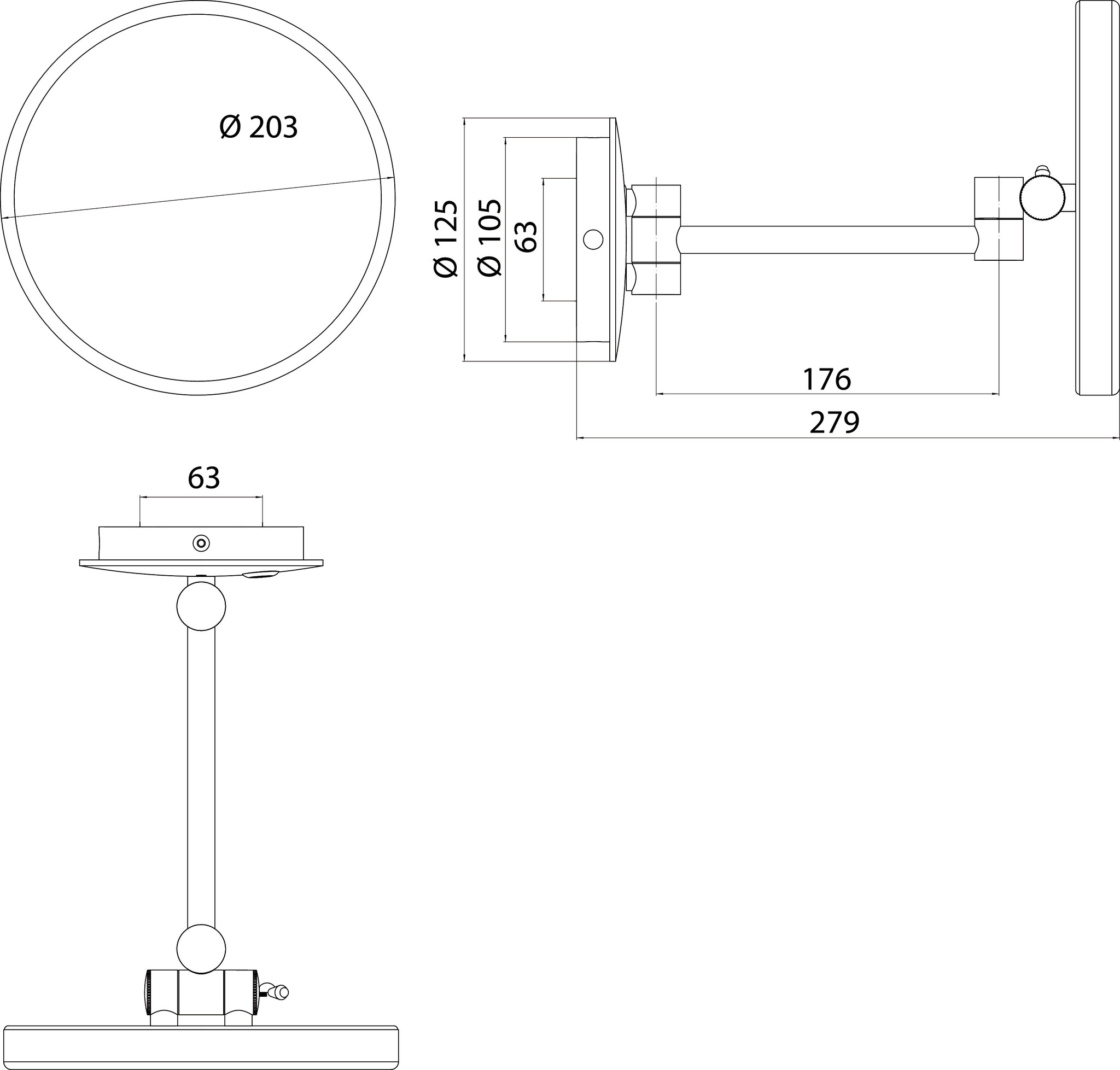 Pure scheerspiegel LED diam203mm 1-armig snoer 3x vergr chr EMCO